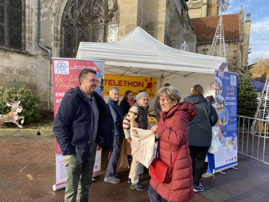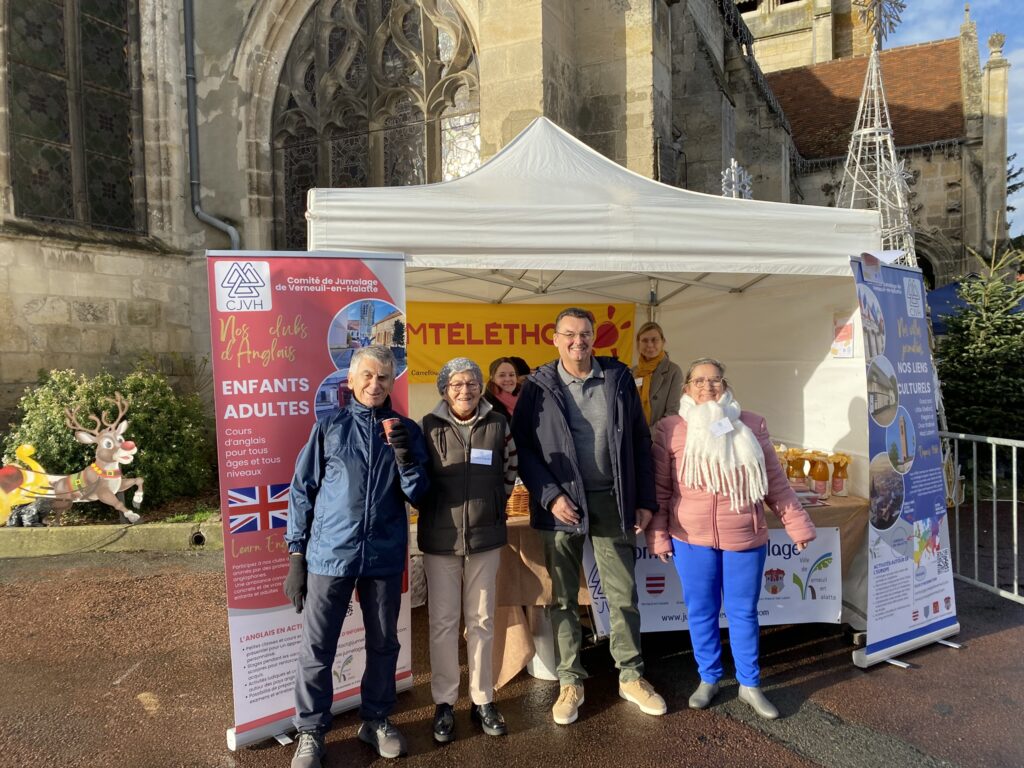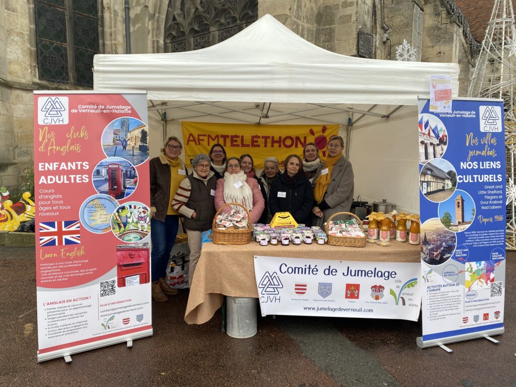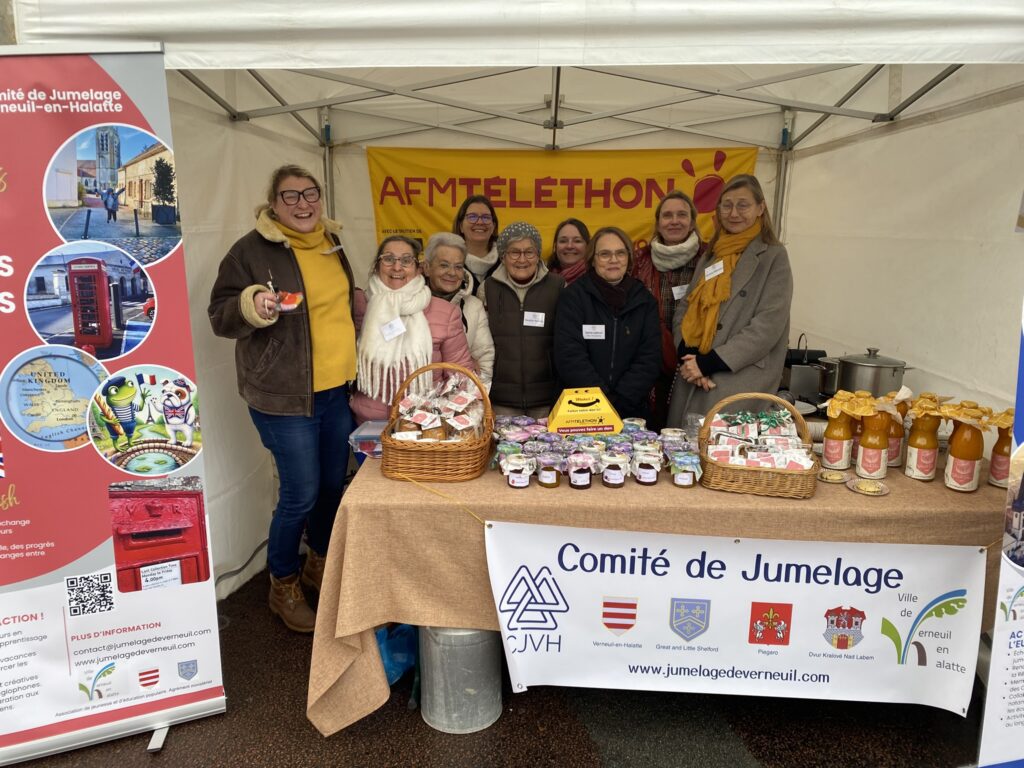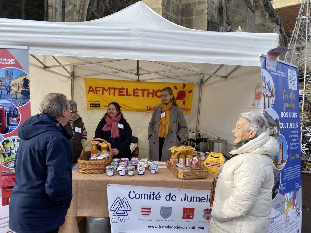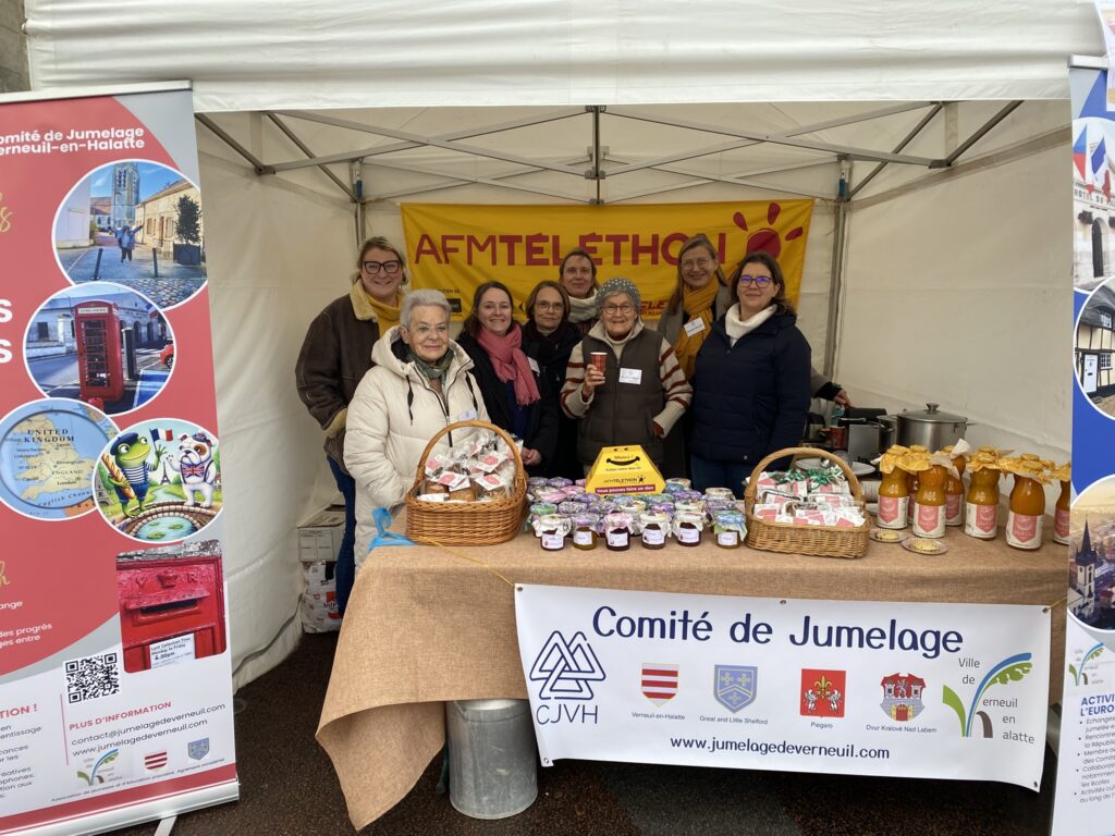 Le 6 décembre 2025, notre comité de jumelage était de retour pour le Téléthon avec son stand rempli de douceurs maison : soupe de potiron, pains d’épices, confitures…de quoi réchauffer les cœurs et les estomacs 💛